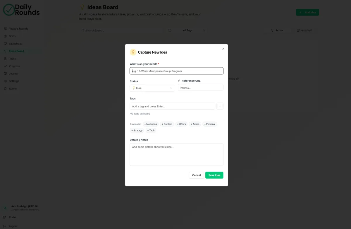It’s a behavioural layer, not a project management system. Many people use Daily Rounds alongside their existing tools.