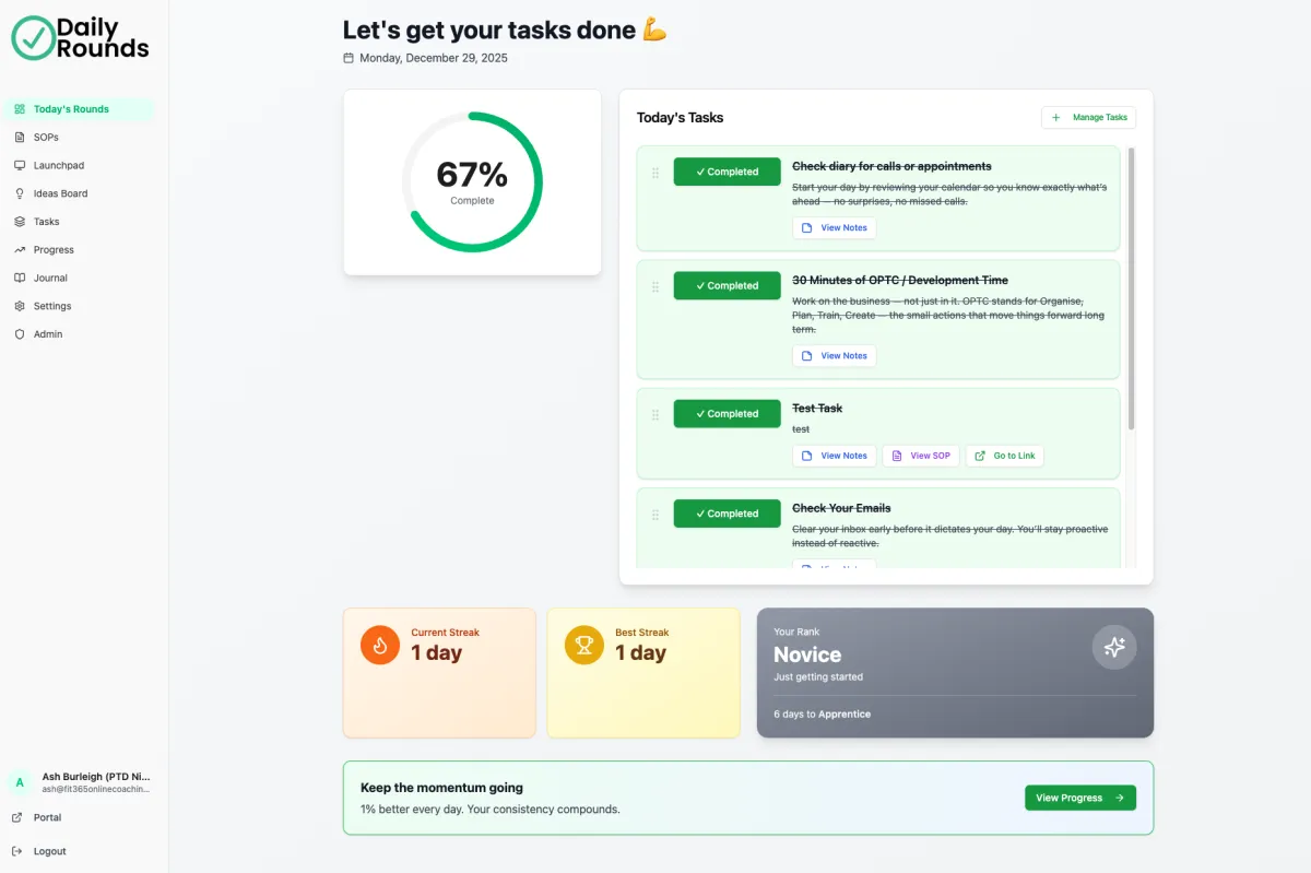 By reducing decision fatigue, mental clutter, and guilt around unfinished work, Daily Rounds often brings a sense of calm and control.